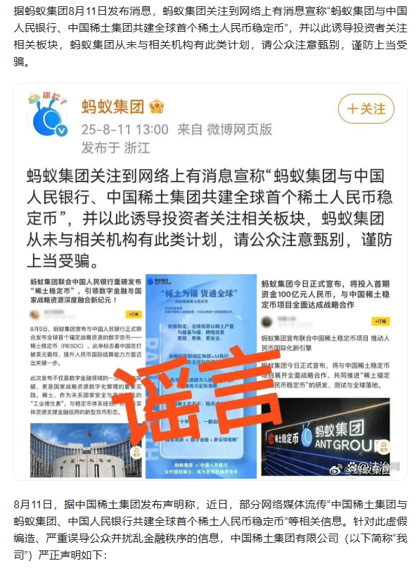 稀土公司、蚂蚁公司已经发布声明,提示广大网友“稀土币”是假的,不要上当受骗!